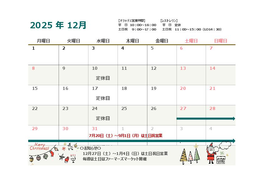 オラッチェの年末年始の営業時間のご案内です。 -------------------------------------------------------------------- 2…