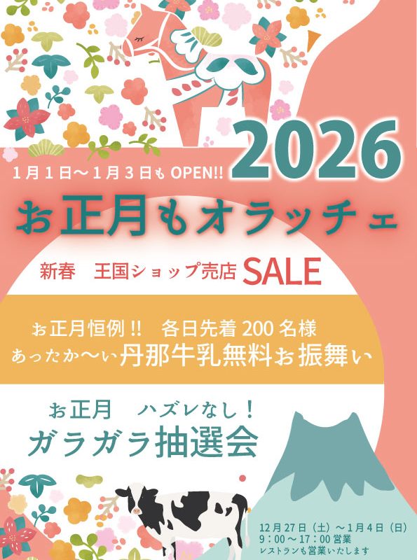 1月1日〜3日は毎年恒例のお正月イベント開催🐄